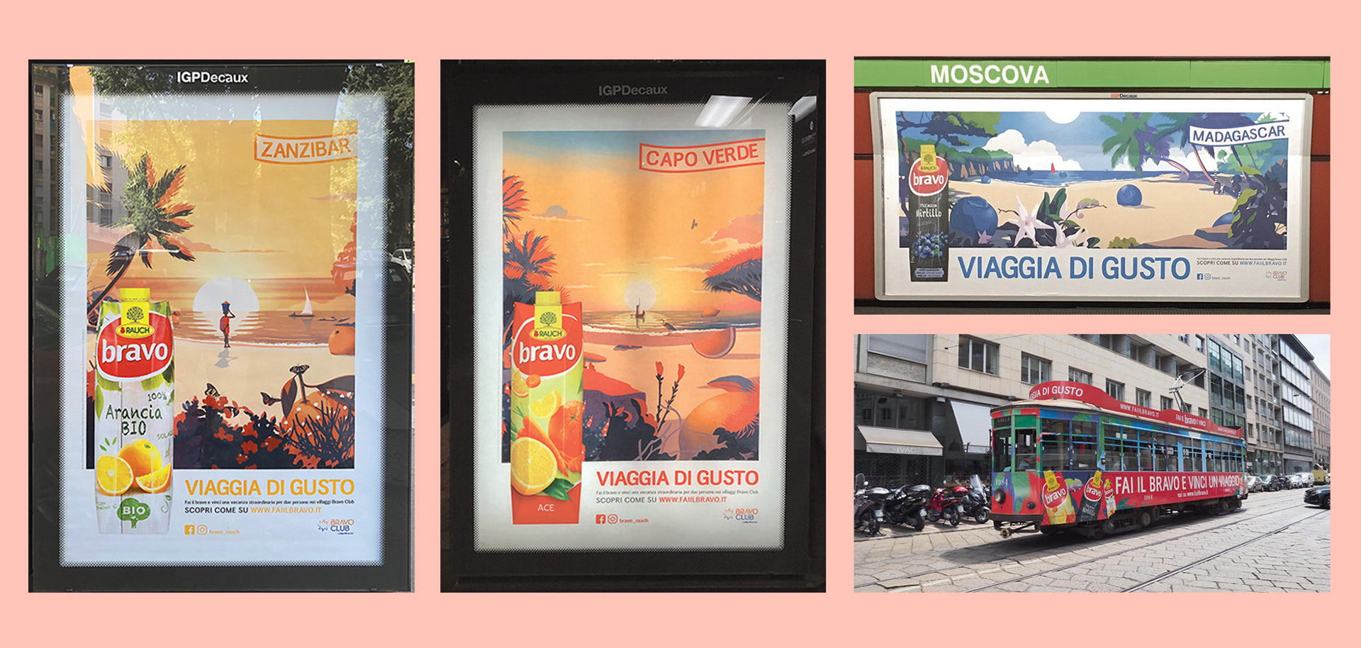 Series of illustrations for the "Fai Il Bravo" competition by Juice company Bravo Rauch